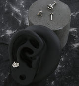 Threadless labret piece that has a crown design. Made from ASTM F-136 titanium with a 4mm disk back. Measures about 8mm x 6mm. Size is 18G with a 5/16" (8mm) length. Sold individually (1pc).