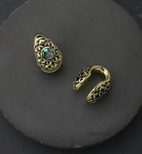 Handcrafted, keyhole shaped brass ear weights with a flower design on the front with an abalone center. Height: 25mm, width: 14mm. Height and width are approximate as these are handcrafted. Size is 9/16" (14mm) with an approximate weight of 19 grams each. Sold in pairs (2pcs)