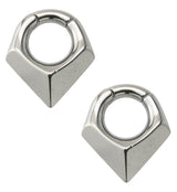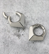Silver V-shaped hinged ear weights. Made from 316L stainless steel with a magnetic hinged design. Height is 37mm, width is 33mm, weight is 28 grams each. 2G or bigger to wear. Sold in pairs (2pcs).