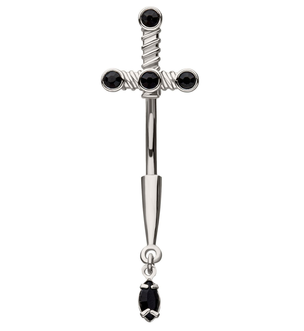 Dagger Black CZ Dangle Stainless Steel Belly Button Ring