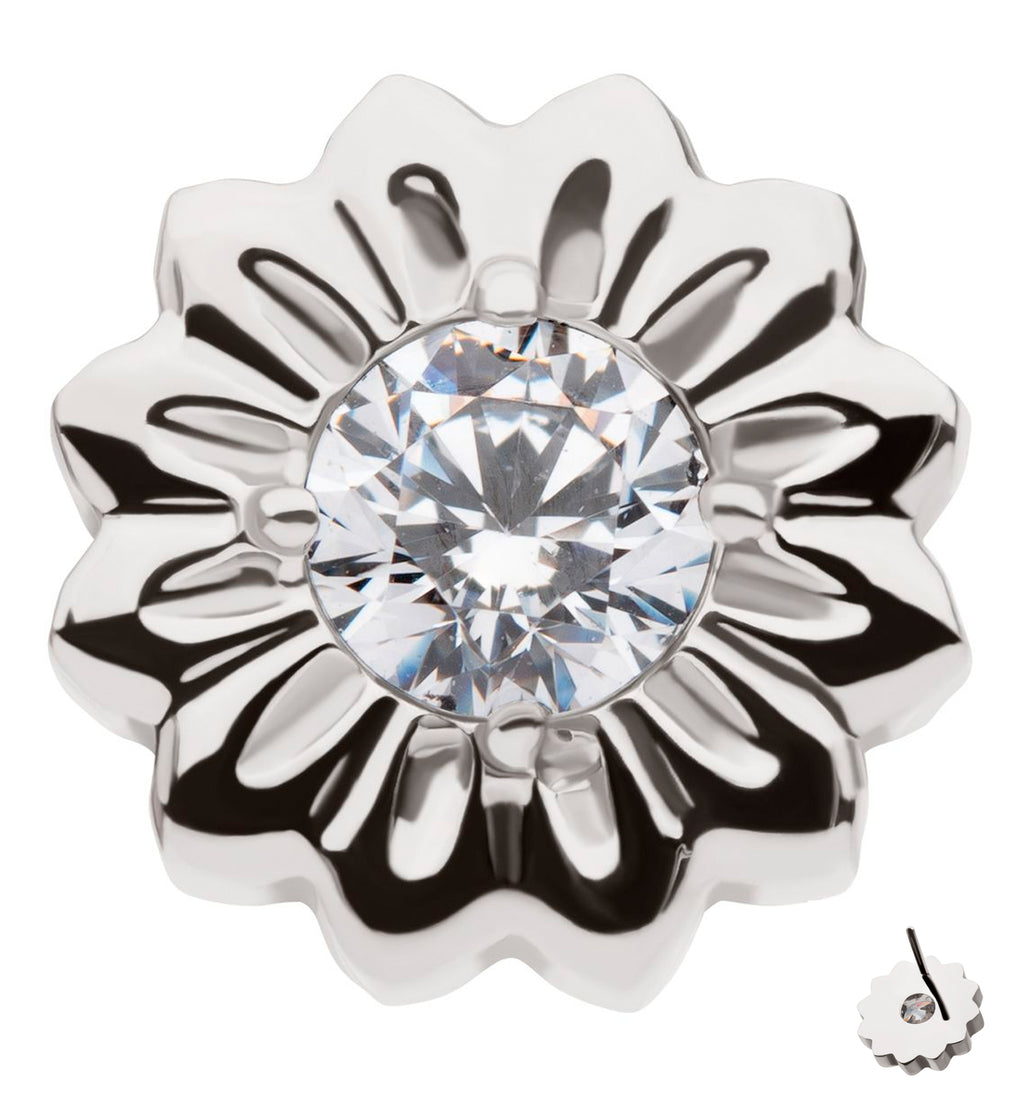 Daisy Flower Clear CZ Titanium Threadless Top