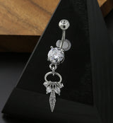 Sparkling belly button ring with a dangling, clear cz charm design with round, marquise, and oval shapes. Size is 14G with a 3/8" 10mm barbell. It is made from 316L stainless steel. Externally threaded. Top clear cz measures at about 5mm. Bottom clear cz gem is a 8mm. Bottom dangle design is about 30mm x 8mm. Sold individually (1 pc).