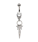 Dangle Charms Long Clear CZ Stainless Steel Belly Button Ring