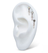 Internally threaded top piece that has a dangling dagger design attached to a round, bezel-set black cz gem. Size is 16G with M0.9 threading. Made from ASTM F-136 titanium. Design measures about 16.6mm x 3.9mm. Sold individually (1pc, top only).