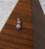 Lovely threadless top piece that has 3 purple opalite gems that are slightly curved and gradually get larger in size. Made from ASTM F-136 titanium and synthetic purple opal gems. Measures about 9mm x 4mm. Fits all threadless posts (14G - 20G). Sold individually (top piece only).