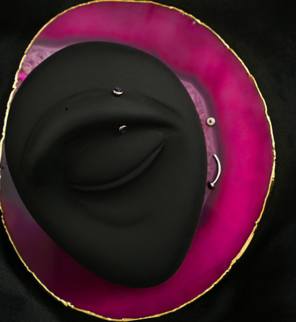 Internally threaded curved barbell made from strong ASTM F-136 titanium and 2 sparkling bezel-set, purple tanzanite cubic zirconia gems. Size 16G with an inner length of 5/16" (8mm). Each end has a removable cz gem with a size of 3mm. Sold individually. For healed piercings.