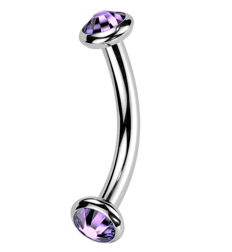 Double Bezel Purple Tanzanite CZ Internally Threaded Titanium Curved Barbell