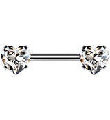 Double Clear Heart CZ Stainless Steel Threadless Barbell
