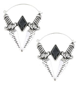 Plug hoops with a double dagger design in a v shape and accented with a black cz in a diamond shape. They are 20G and made from 316L stainless steel with a 316L stainless steel post. These styles are made to fit in any eyelet/tunnel style of plugs but can also be worn in normal ear piercings. Dimension: 60mm (L) x 48mm (W). Sold in pairs (2 pcs).