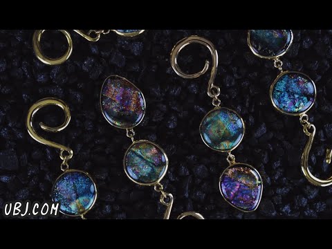 Sold in pairs (2pc) Dichroic glass Appx 17 grams each piece 4G or bigger to wear Appx Width: 19mm Appx Height: 82mm Made from brass NOTICE: color will have some variance for each piece Brass is not meant for long term wear. May oxidize under extreme moisture conditions **Each piece will be unique in color & pattern Free domestic shipping