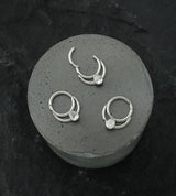 Hinged segment ring made from 316L stainless steel with a double hoop shape and a single, bezel set teardrop clear cz gem measuring at about 5mm x 3mm. Size is 16G. Inner diameter size is 5/16" (8mm). The hinged design makes this piece easy to insert and remove. Sold individually (1pc).
