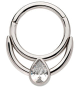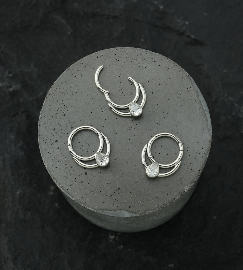 Double Hoop Teardrop Clear CZ Stainless Steel Hinged Segment Ring
