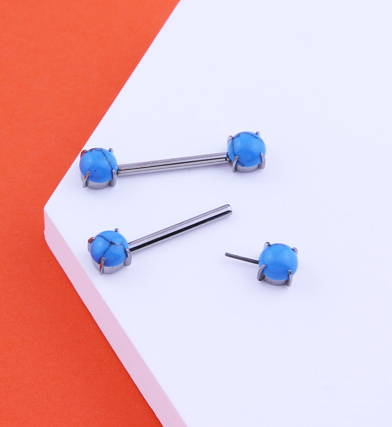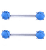 Double Howlite Turquoise Stone Threadless Titanium Nipple Barbells