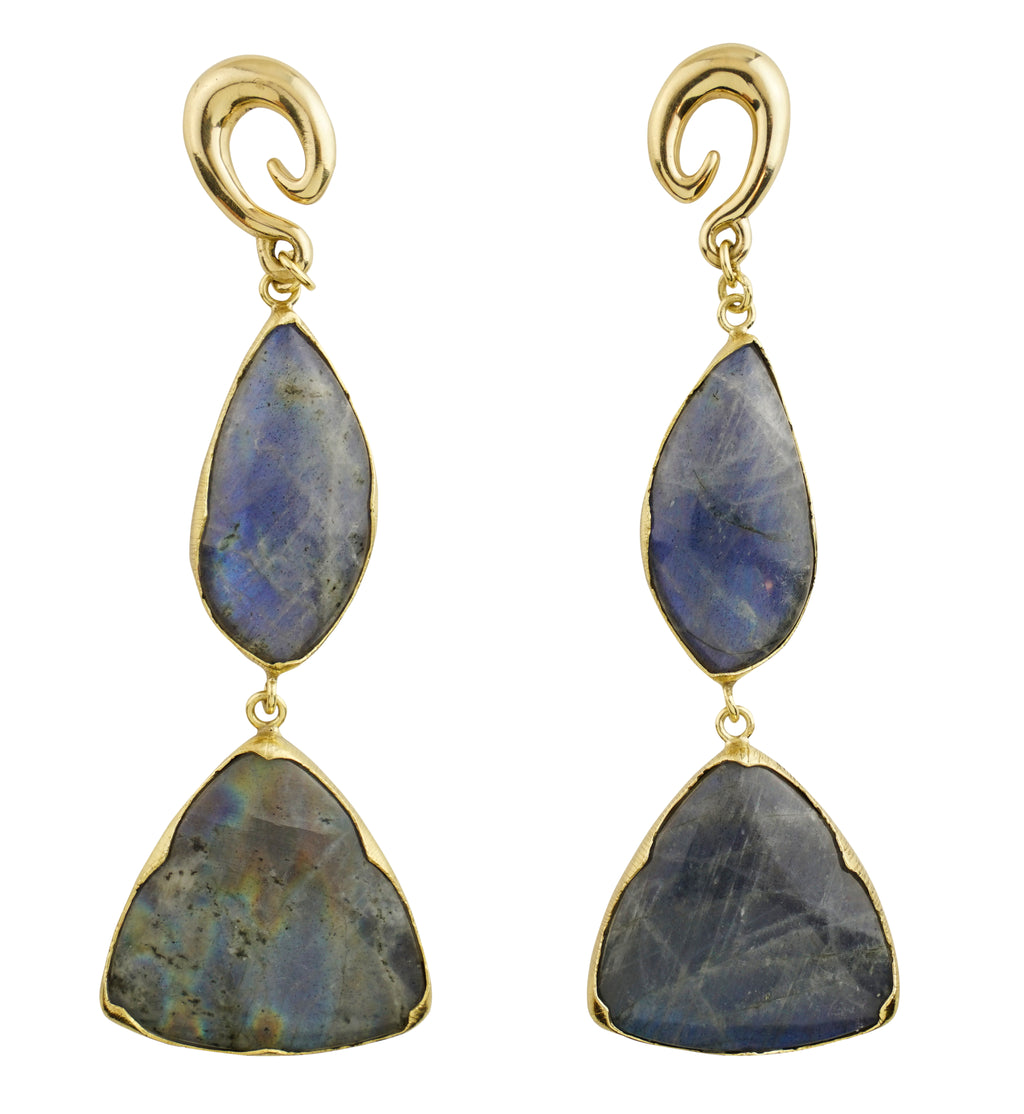 Double Labradorite Stone Brass Hangers/Ear Weights Version 1