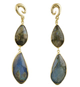 Double Labradorite Stone Brass Hangers/Ear Weights Version 4