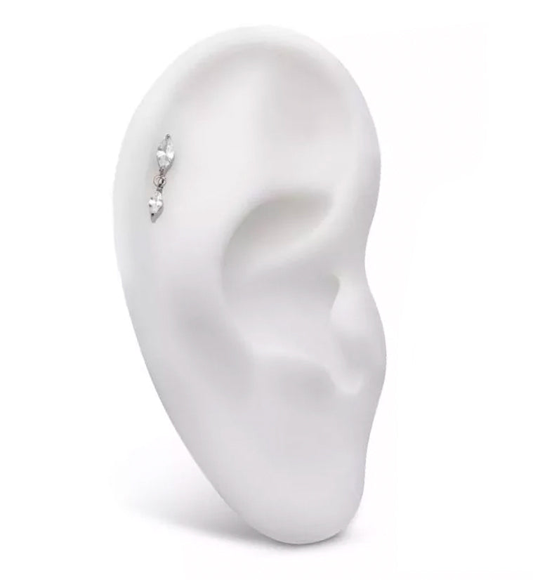 Double Marquise Dangle CZ Internally Threaded Titanium Top