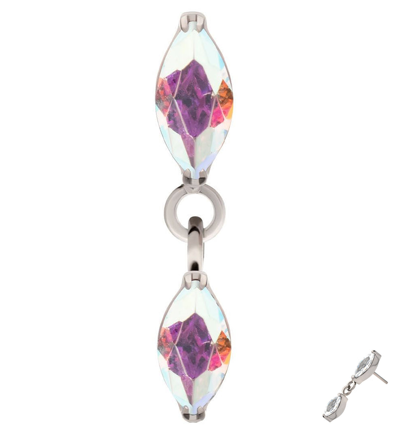 Double Marquise Rainbow Aurora CZ Dangle Titanium Threadless Top