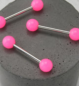 Classic double acrylic ball barbell. Size is 14G with a 5/8" (16mm) barbell. Made from 316L stainless steel and two pink acrylic balls. Ball size is 6mm. Externally threaded. Sold individually (1pc).