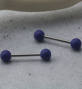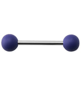 Externally threaded barbell made from 316L stainless steel with two 6mm purple silicon balls on either end. Full length is 28mm (1 & 1/8") with a barbell length of 16mm (5/8"). Size 14G. For healed piercings.