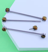Be a show stopper with our double tigers eye stone industrial barbell! The 14g straight barbell is constructed from durable ASTM F-136 titanium and measures 1 ½”(38mm) total. This barbell is threadless for easy wear and sizable 5mm tigers eye stone ends to finish. Sold individually (3 pcs - 2 stone ends, one barbell).