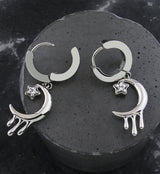 Dripping Half Moon Star Clear CZ Stainless Steel Hoop Huggie Earrings