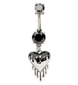 Dripping Heart Black CZ Stainless Steel Belly Button Ring