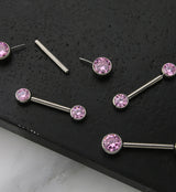 Dual Bezel Pink CZ Titanium Threadless Nipple Ring Barbell