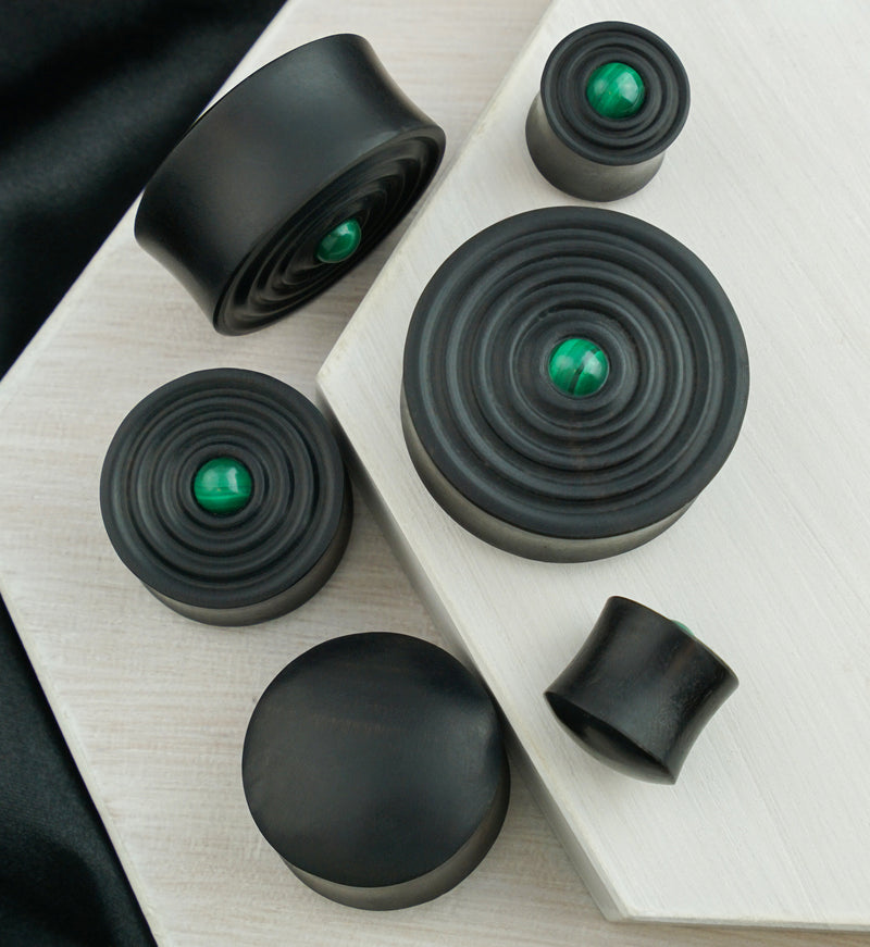 Ecliptic Areng Wood Plugs With Malachite Inlay