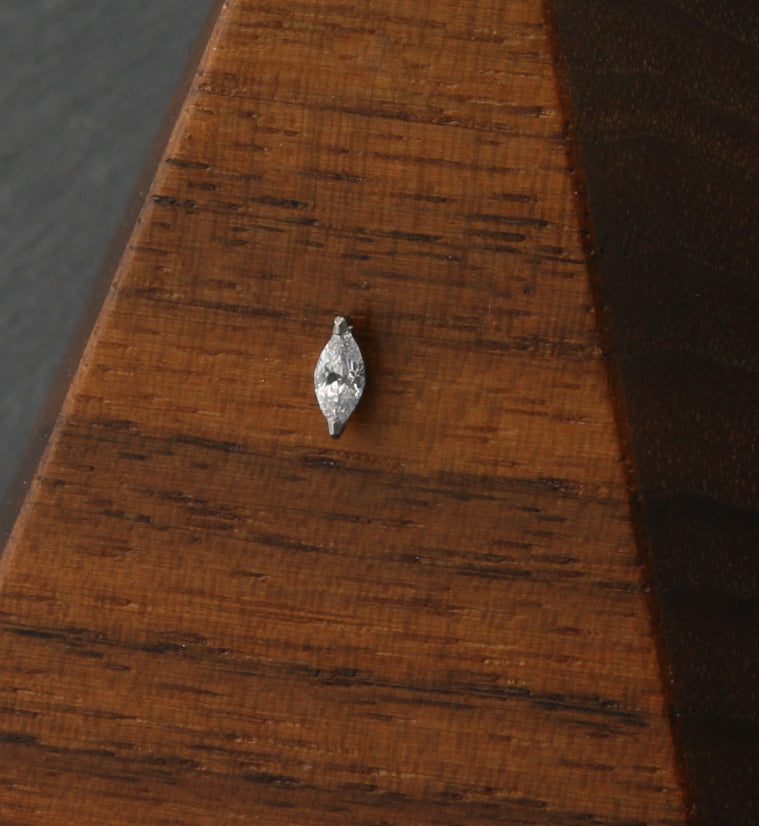 Gorgeous threadless top piece that has a marquise, clear cubic zirconia gem in a 2-prong set. Made from ASTM F-136 titanium. Measures about 5mm x 2mm. Fits most threadless posts. Sold individually (top piece only).