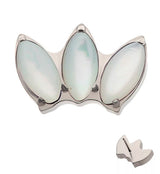 Pretty threadless top piece that has a triple marquise, white mother of pearl shell gem design. Made from ASTM F-136 titanium. Measures about 7.5mm x 5mm. Size 25G. Fits most threadless posts. Sold individually (top piece only).