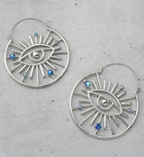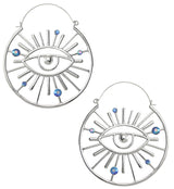 Plug hoops with an evil eye design filled with blue rainbow aurora cz gems. They are 20G and made from 316L stainless steel with a 316L stainless steel post. These styles are made to fit in any eyelet/tunnel style of plugs but can also be worn in normal ear piercings. Dimension: 70mm (L) x 60mm (W). Sold in pairs (2 pcs).