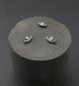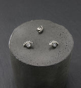 Internally threaded top piece that is has an evil eye design with a clear cz gems in the middle. Choose your gem size: 2.5mm or 3mm. Made from ASTM F-136 titanium. Measures about 8mm x 4.5mm or 5mm, depending on gem size chosen. Size is 16G. M0.9 threading. Sold individually (top piece only).