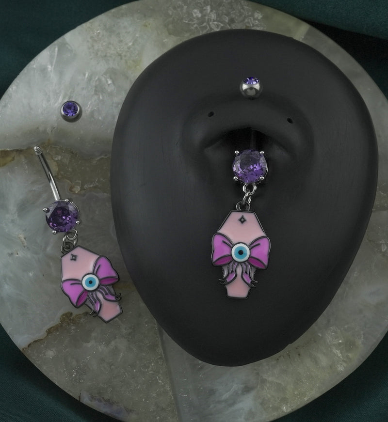 Eyeball Bow Coffin Tanzanite CZ Stainless Steel Belly Button Ring