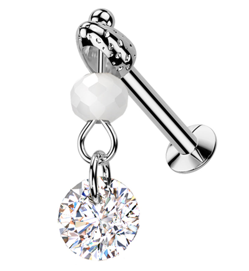 Faceted Bead Clear CZ Dangle Stainless Steel Convex Disc Threadless Labret