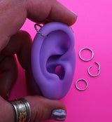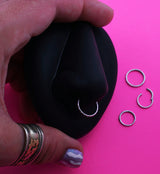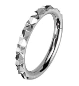 Hinged segment ring made from 316L stainless steel with a hoop design that has a side-facing, faceted design along the bottom. Size is 16G with an inner diameter size of either 5/16" (8mm) or 3/8" (10mm). The hinged design makes this piece easy to insert and remove. Sold individually (1pc).