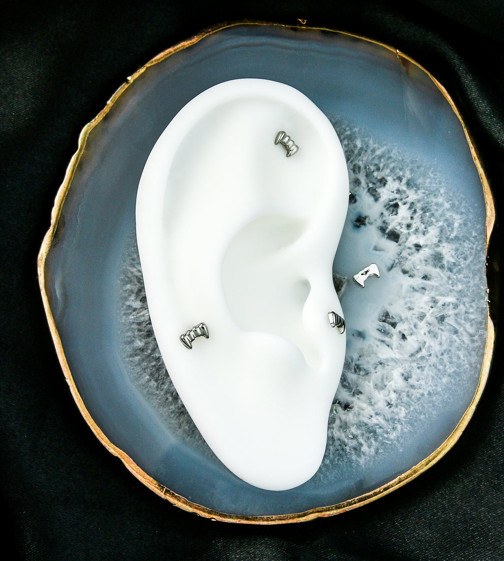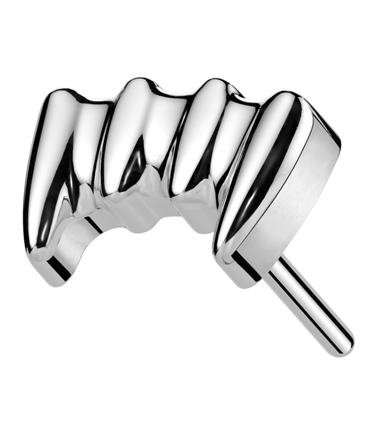Made from high-quality ASTM F-136 titanium, this titanium threadless top has a vampire fang design on top. The design size is approximately 5mm x 3mm. This individual top utilizes a threadless design and fits most threadless posts for a secure and comfortable fit. Sold individually.