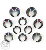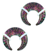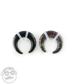 Sold in pairs, these Flare Dichroic Glass Pinchers add a splash of vibrant color to your healed lobes. Available in sizes from 6G (4mm) to 00G (10mm), each pair features unique dichroic patterns, making your look truly one-of-a-kind. We will do our best to find you a complementing pair. They come with four “O” rings (two per piece) for a secure fit. Please note, these are designed for healed lobes only and not for stretching.