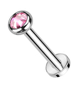 Flat Bezel Pink CZ Internally Threaded Titanium Labret