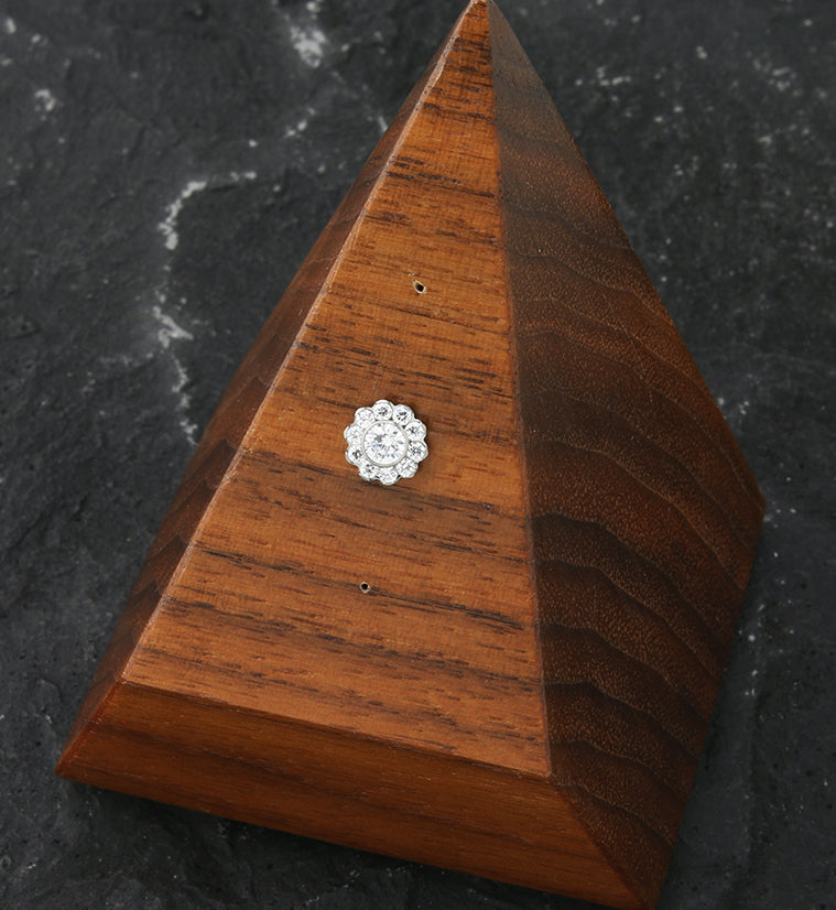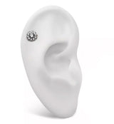 Flower-shaped threadless top piece that is filled with round clear cubic zirconia gems. Made from ASTM F-136 titanium. Measures about 7mm x 7mm. Fits most threadless posts. Sold individually (top piece only).