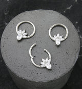 Hinged segment ring made from 316L stainless steel with a flower shape filled with clear marquise cz gems. Size is 16G. Inner diameter size: 3/8" (10mm). The hinged design makes this piece easy to insert and remove. Sold individually (1pc).