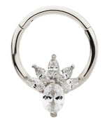 Flower Marquise Clear CZ Stainless Steel Hinged Segment Ring
