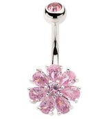 Flower Teardrop Pink CZ Stainless Steel Belly Button Ring