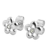 Flower Trace Clear CZ Stainless Steel Stud Earrings