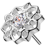 Flower Whimsy Clear CZ Threadless Titanium Top