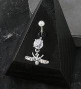 Flying Bee Pave CZ Dangle Stainless Steel Belly Button Ring