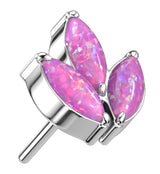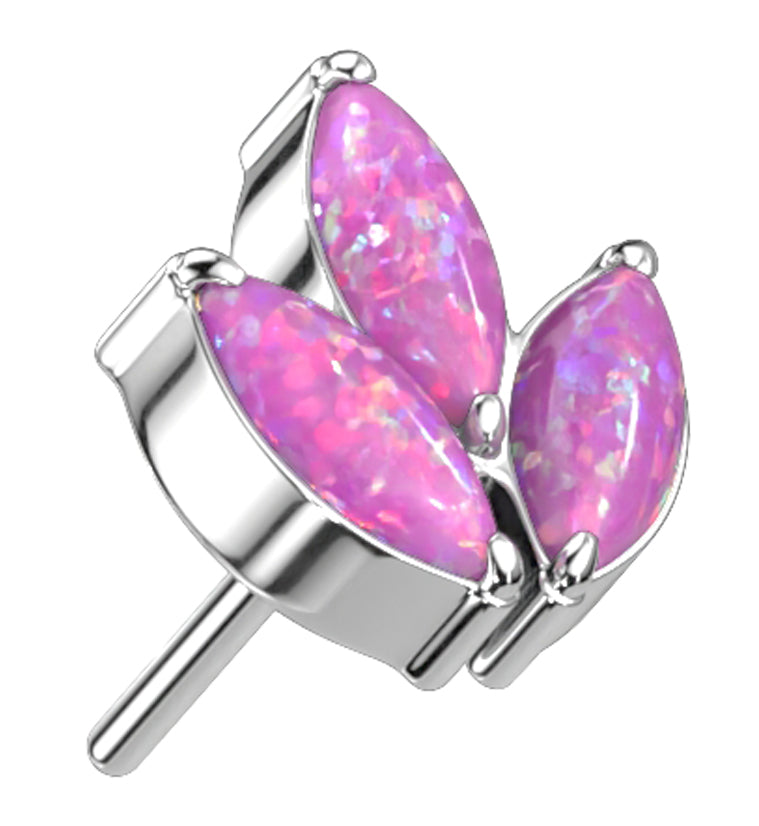 Opalite threadless top piece that has a triple marquise synthetic pink opal gem design. Made from ASTM F-136 titanium. Measures about 5mm x 5mm. Fits most threadless posts. Sold individually (top piece only).