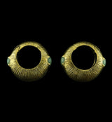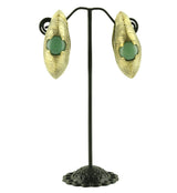 Sold in pairs (2pc) Size: 2G and bigger to wear 34 grams each Aventurine stone prong set Dimensions: 42mm x 46mm Clicker opens and closes Casted in brass Brass is not meant for long term wear May oxidize under extreme moisture conditions