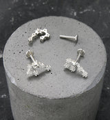 Internally threaded labret that consists of clear cz gems in the shape of the constellation of the Gemini zodiac. Pin and base are made from 316L stainless steel and the constellation design is made from rhodium plated brass so it may tarnish over time if exposed to extreme moisture conditions. Choose your gauge size between 18G and 16g. Length is 5/16" (8mm). Constellation size is 12mm x 8mm. Flat back: 4mm. For healed piercings. Sold individually (1pc).