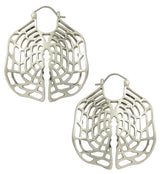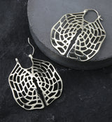 Lightweight white brass earrings/hangers with a geometric fiddle leaf design. Size is 18G. Available in two sizes: Small and Large. Small measures at 50mm x 40mm with a weight of about 11 grams each. Large measures at 82mm x 65mm with a weight of about 31 grams each. Made from white brass with an ASTM F-136 titanium wire. One side is textured and one side is polished, so you can wear these earrings with either side facing out! Not meant for long term wear. May oxidize under extreme moisture conditions. Sold in pairs (2pc). For healed piercings/lobes.