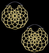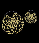 Gorgeous earrings with a beautiful design. Fun pair to add to your collection! These are made from brass with an ASTM F-136 titanium clasp. They come in three different sizes: small, medium, large. Small measures 55mm x 48mm and weigh about 10 grams each. Medium is 75mm x 68mm and weigh about 17 grams. Large is 85mm x 75mm and weigh about 26 grams. Size is 18G. Brass is not meant for long term wear. It may oxidize under extreme moisture conditions. Sold as a pair.